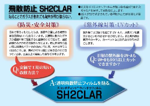 スリーエム製透明飛散防止UVカットフィルム(SH2CLAR)