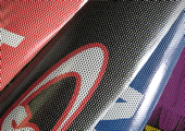 ワンウェイ印刷とは、主にガラス面に施工し、外からはグラフィックが、内側からは細かい穴を透かして、外の景色を見ることができる印刷表現です。ラッピングカーやラッピングバスをはじめ店舗のガラス面などに広く用いられています。